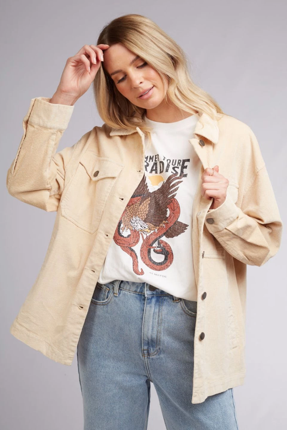 Kendra Cord Shacket is our classic shacket fit you know and love in a luxe natural coloured cord fabric with utility styling. Pair back with denim or dress up over your favourite Autumn dress.