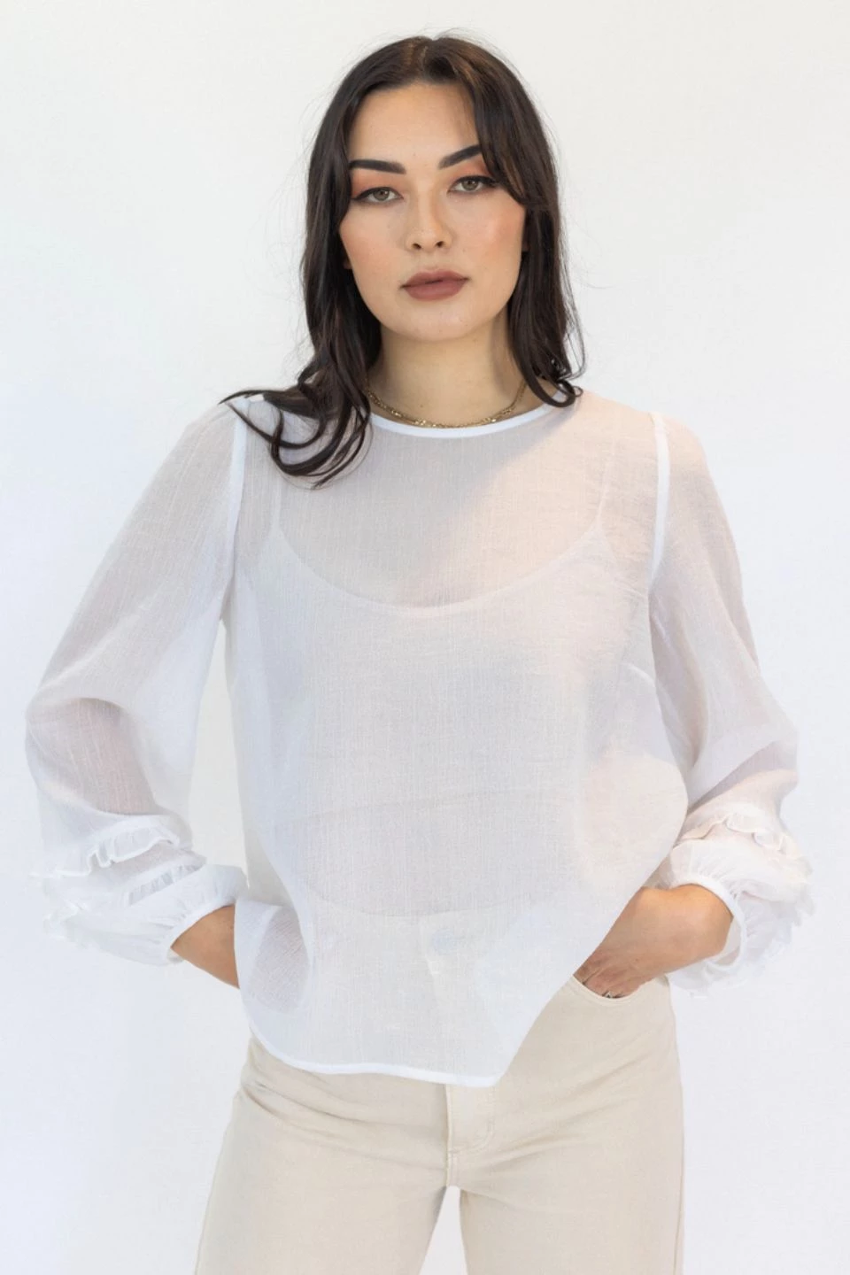 The Ava crinkle shimmer blouse is the perfect blouse to take you from desk to dinner. Pair this stunning blouse with black dress pants and boots for a night out or dress it down with jeans and sneakers.Â