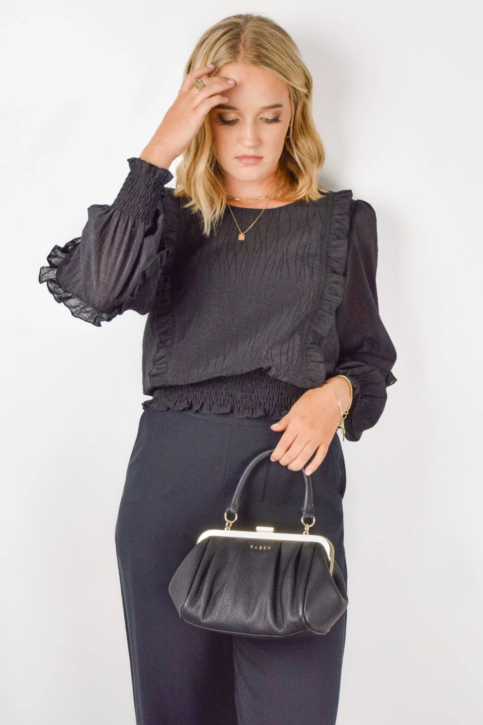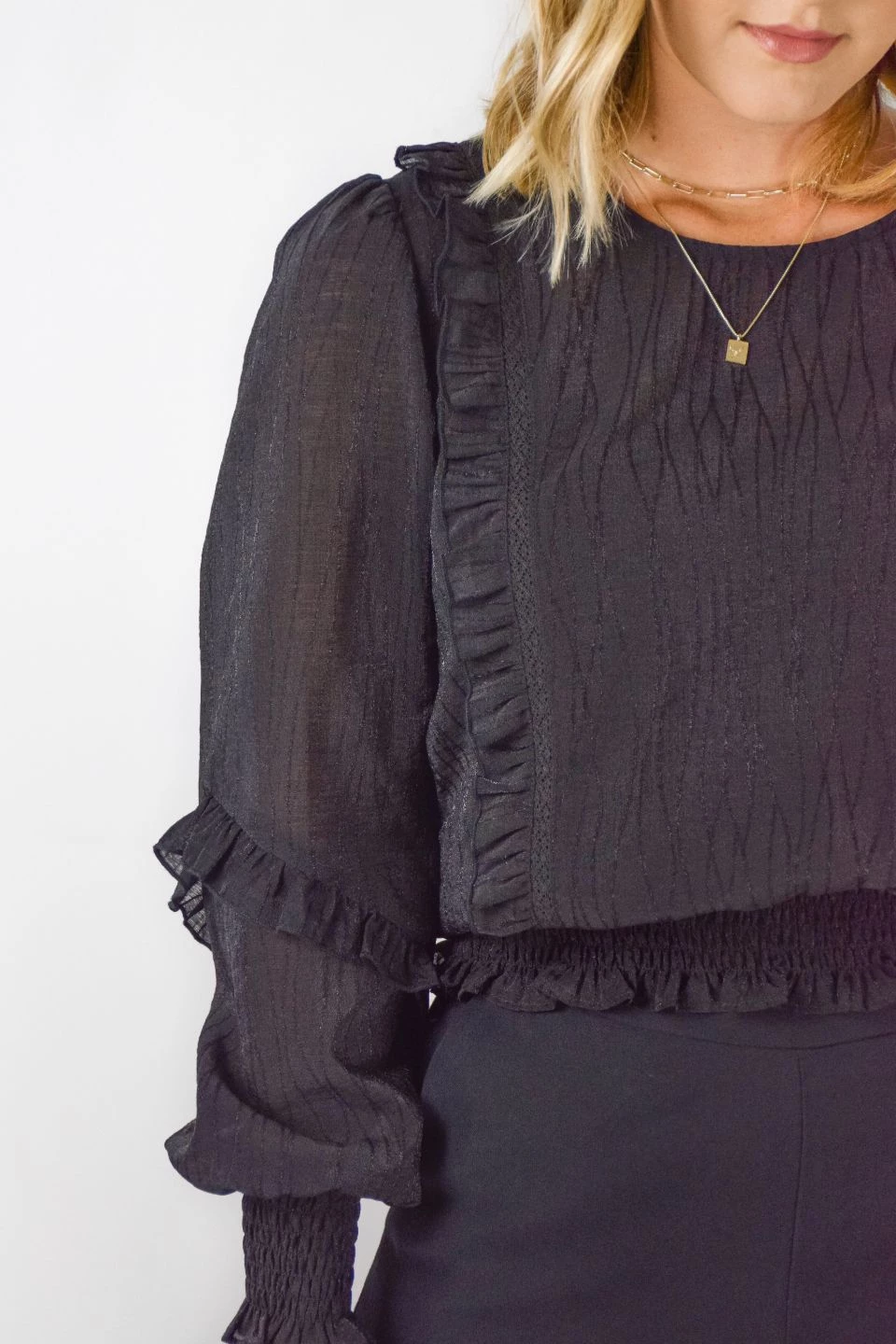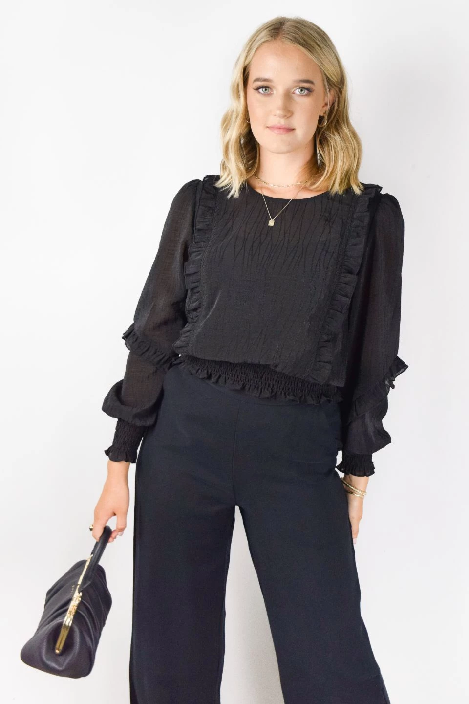 If you are looking for the perfect summer blouse look no further! The Cloud sand shirred blouse features a gorgeous lightweight material and fun ruffle sleeve. We love this blouse paired with a pair of jeans and sneakers for an easy day time look.