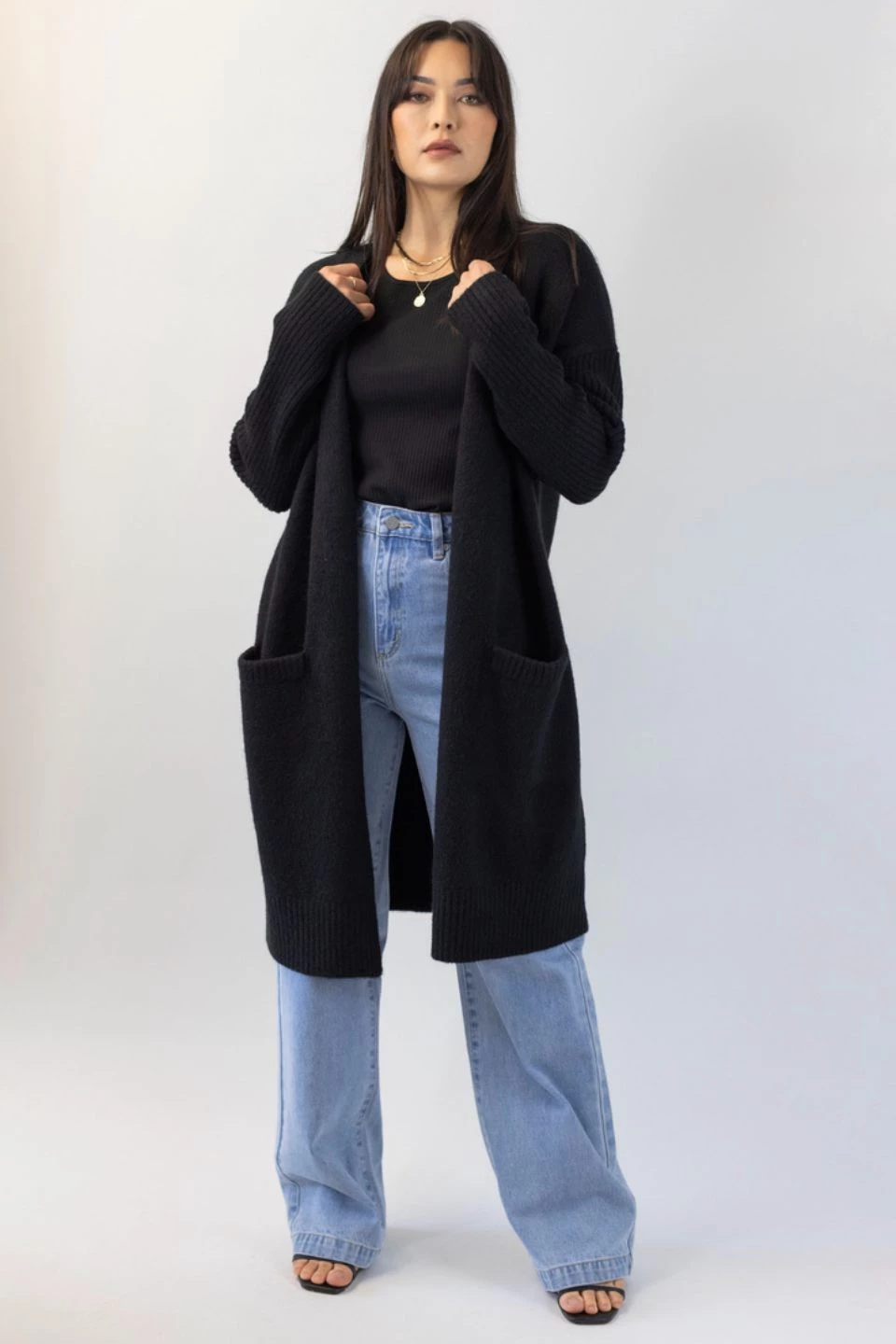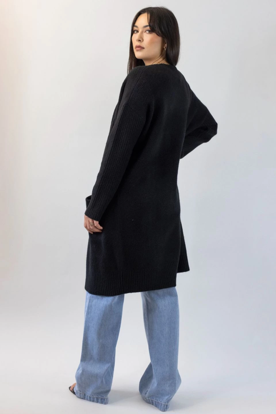 Reach peak cosiness with this stunning Secure Knit Cardigan! Made from the softest knit fabric, this long cardigan has ribbed sleeves for style and pockets for ultimate convenience.