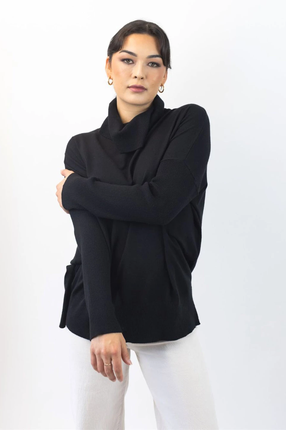 Gorgeous and stylish! This rolled neck knit will keep you toasty and warm. The Vital Jumper has a rolled ribbed neck and hemline and super soft knit fabric! Pairs perfect with pants and boots for that casual look!