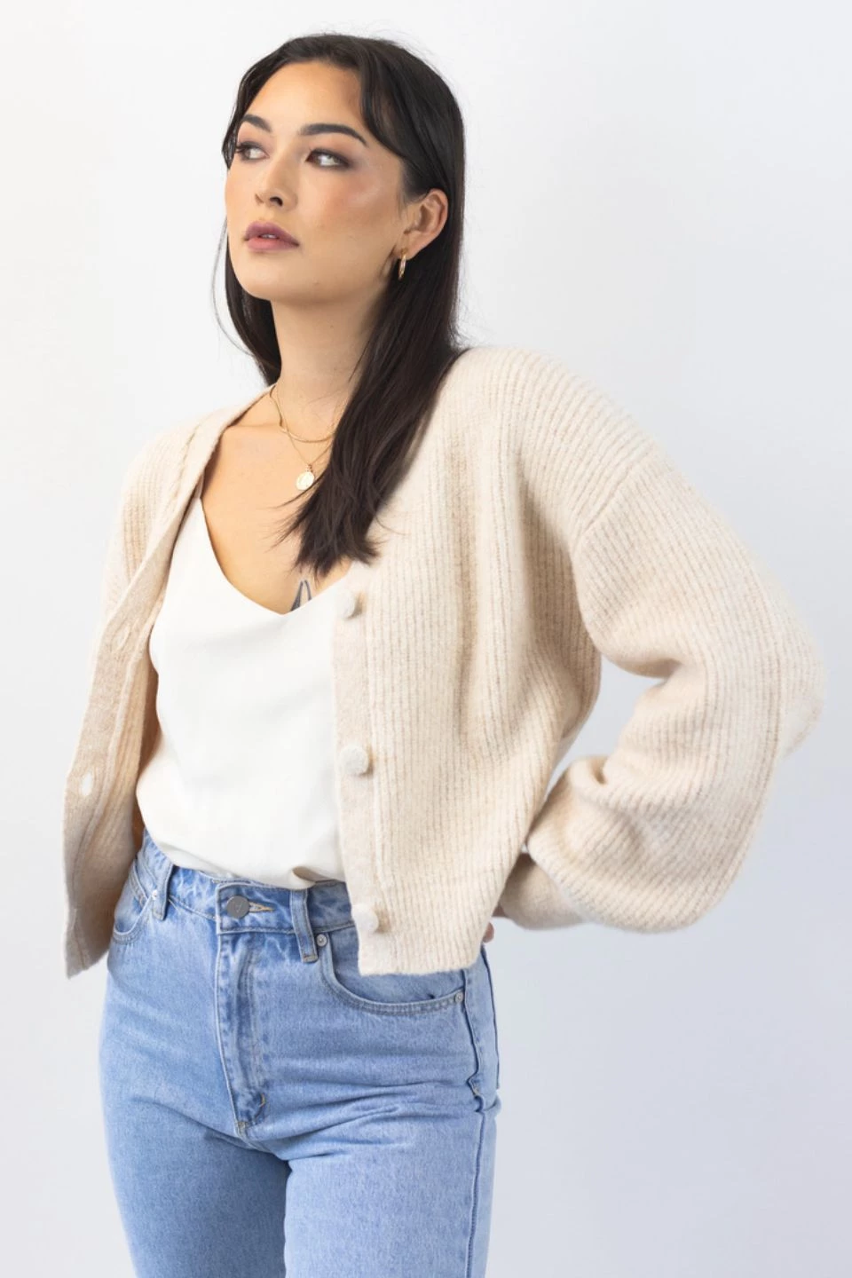 Beautiful and versatile, the Wholesome Knit Cardigan is a must-have in your wardrobe! this stylish cardigan features fashionable balloon sleeves. With a three-button closure, you can wear this beautiful cardigan on its own or layered over your favourite tops.