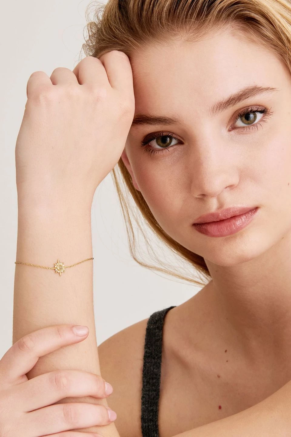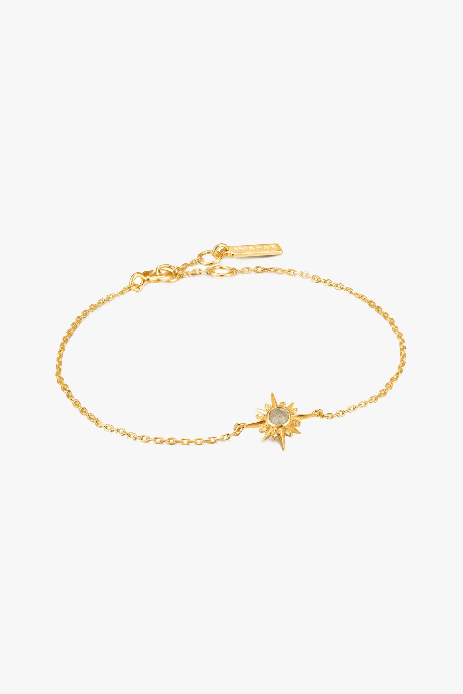 Make midnight sparkle your new-season staple with an intricately-designed star bracelet. This beautifully delicate chain is balanced with a striking star centrepiece, complete with a natural labradorite stone, for a look that exudes sparkle with edge.