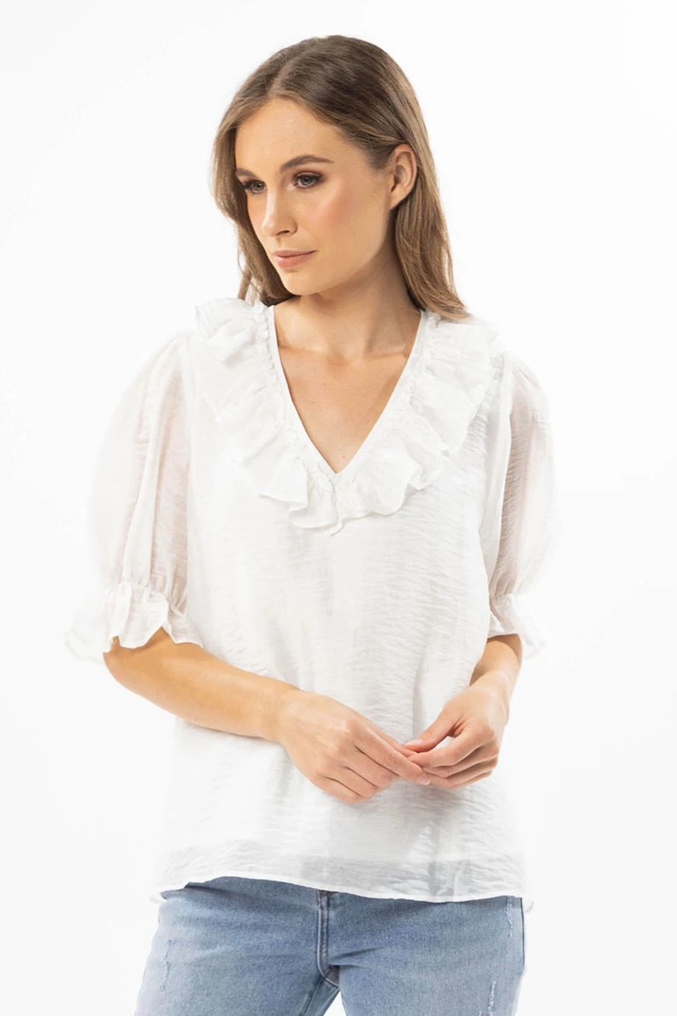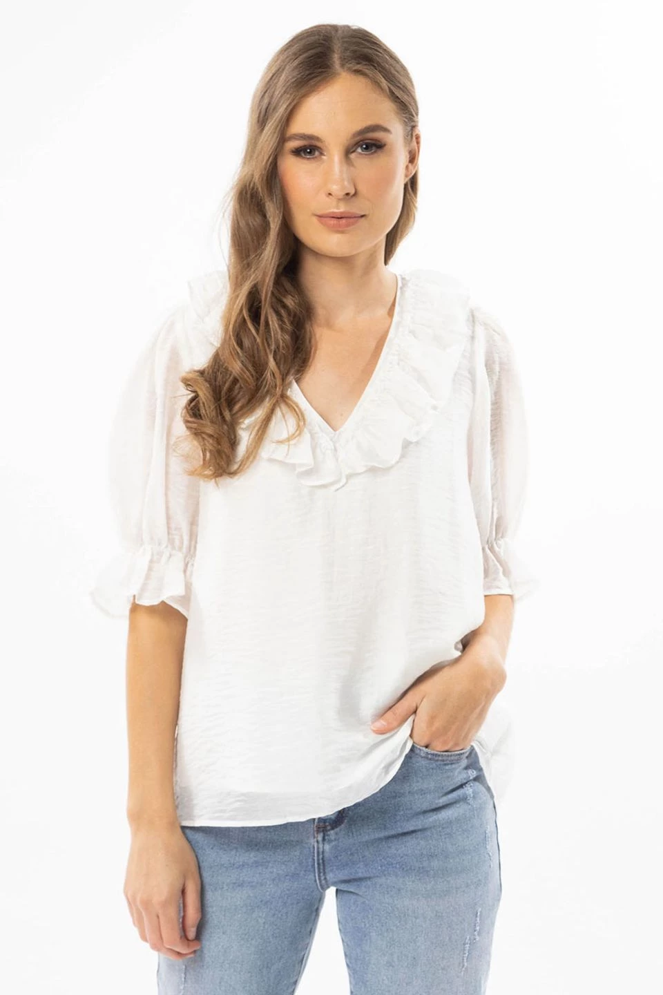 Spend your time looking dreamy in style in the Sweet Dreams White Tencel Top. This easy and breezy piece features gorgeous frill sleeve detailing and a flattering V-shape neckline that is easy to style up or down. Team it with a mini skirt, heeled sandals and a baguette bag for a going out look or keep it casual with denim shorts and sneakers!