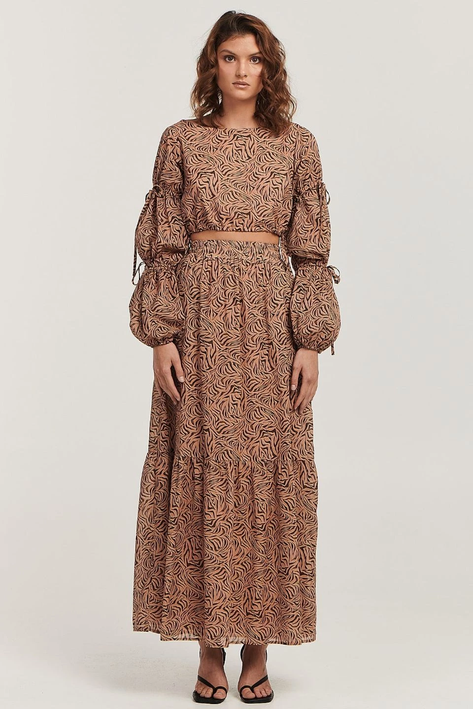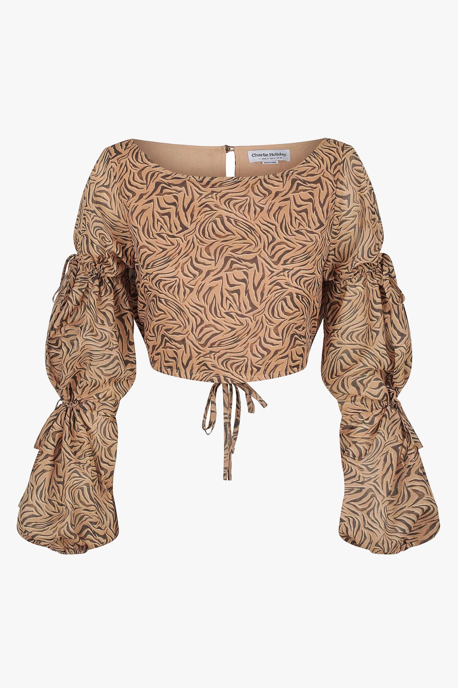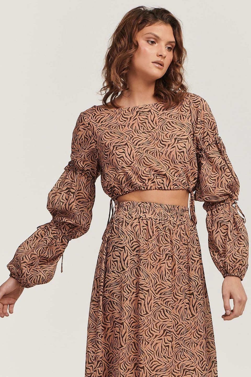 Exaggerated blouson sleeves contrast beautifully with a cropped bodice in the gorgeous Whitney blouse this season. Style it with the Whitney maxi skirt and platform heels for a dressy night-time ensemble.