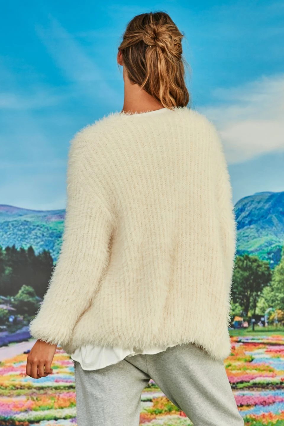 Designed in the ‘Soft Focus’ acrylic wool blend. Super soft and perfect for in-between seasons. The ‘Fluffy Luck’ cardi is made from a soft blend of fibres giving it a ‘fluffy’, ultra comfy look and feel.