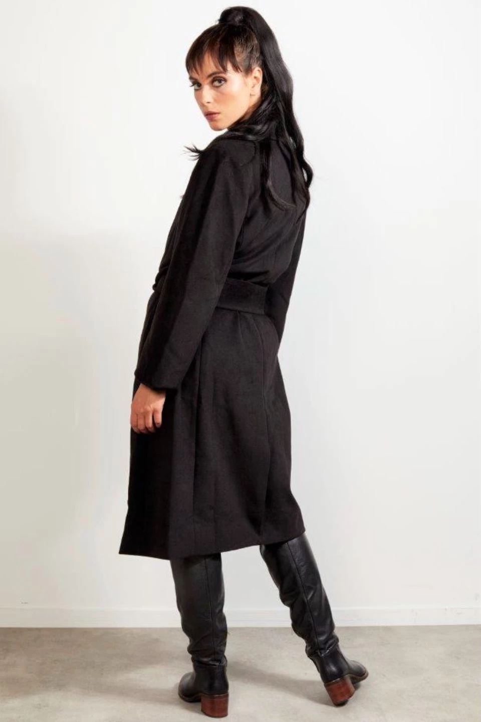 Drama the Label’s Money Coat is a team favourite the gorgeous soft velvety fabric. This coat is Cross Over Wrap, Long length, statement buttons at front, back kick vent, side pockets, belt, fully lined. This Black Money Coat will go with just everything and a must for all, this will be a winner so get in quick!