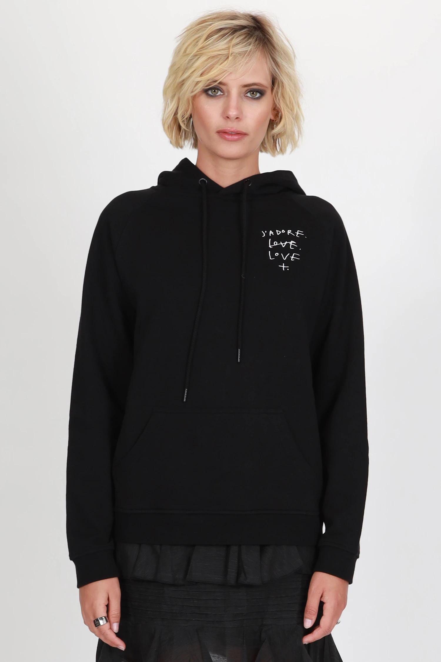 The Present Hood is our Raglan sleeved classic Hoodie. With its self-lined hood and front pouch pocket. This style is embroidered with Love words next to your heart.