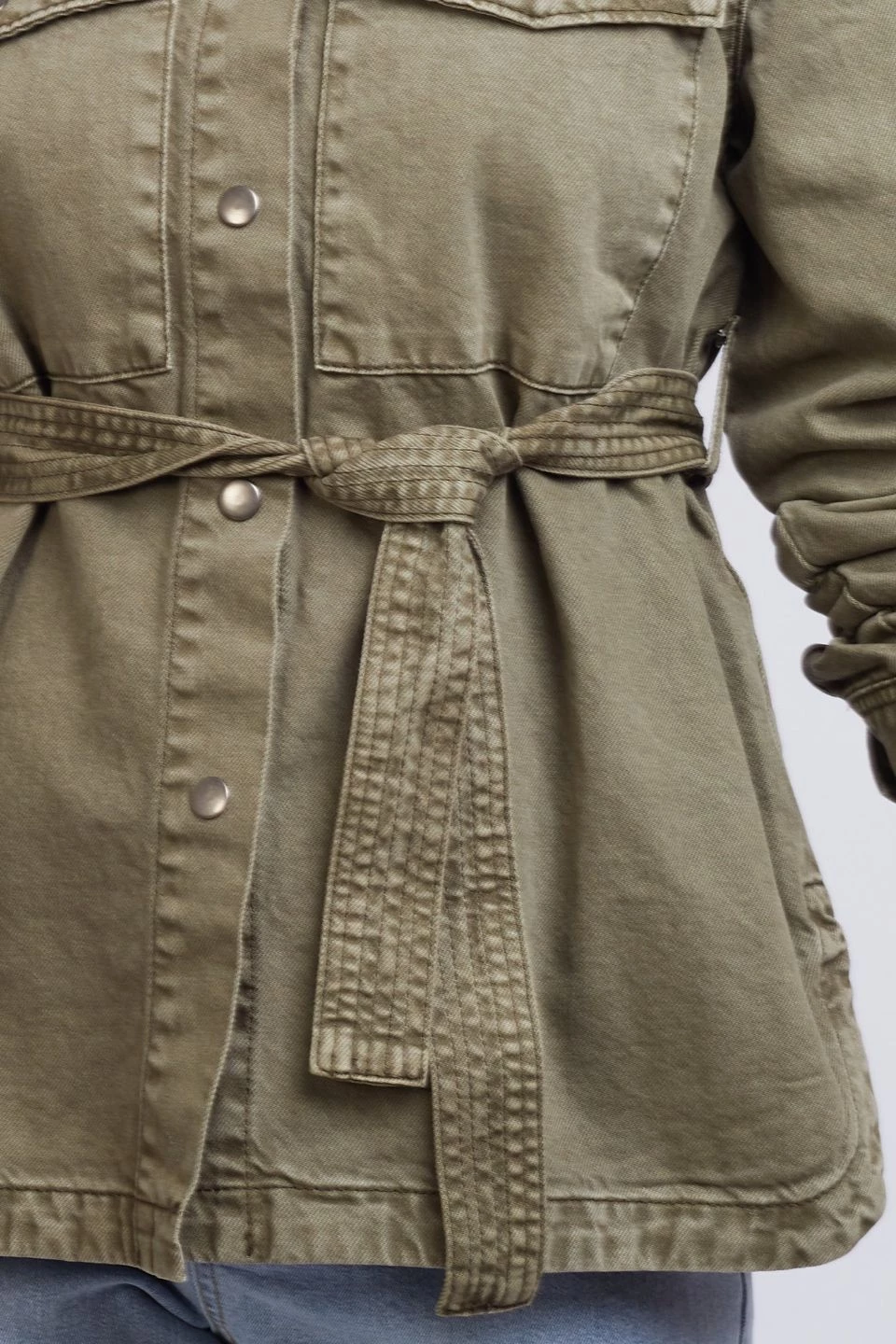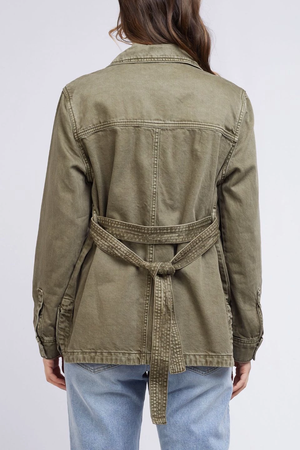 The Atlas khaki shacket from Foxwood is the perfect mid weight outerwear for all the times when a jacket or coat are too heavy. Featuring full button front, removable belt, classic collar, buttoned cuffs, two buttoned chest pockets, side splits and all in a beautiful khaki, 100% cotton, vintage wash denim.