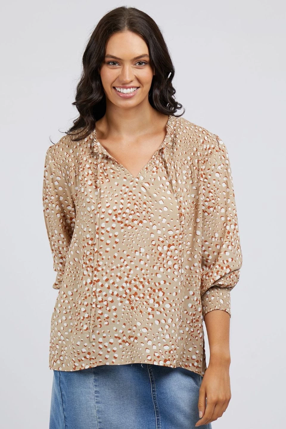 The Kaiya Biege Animal Top is the blouse we all need in our wardrobes! This super relaxed blouse is so easy to wear, pair with your fave jeans or skirt.