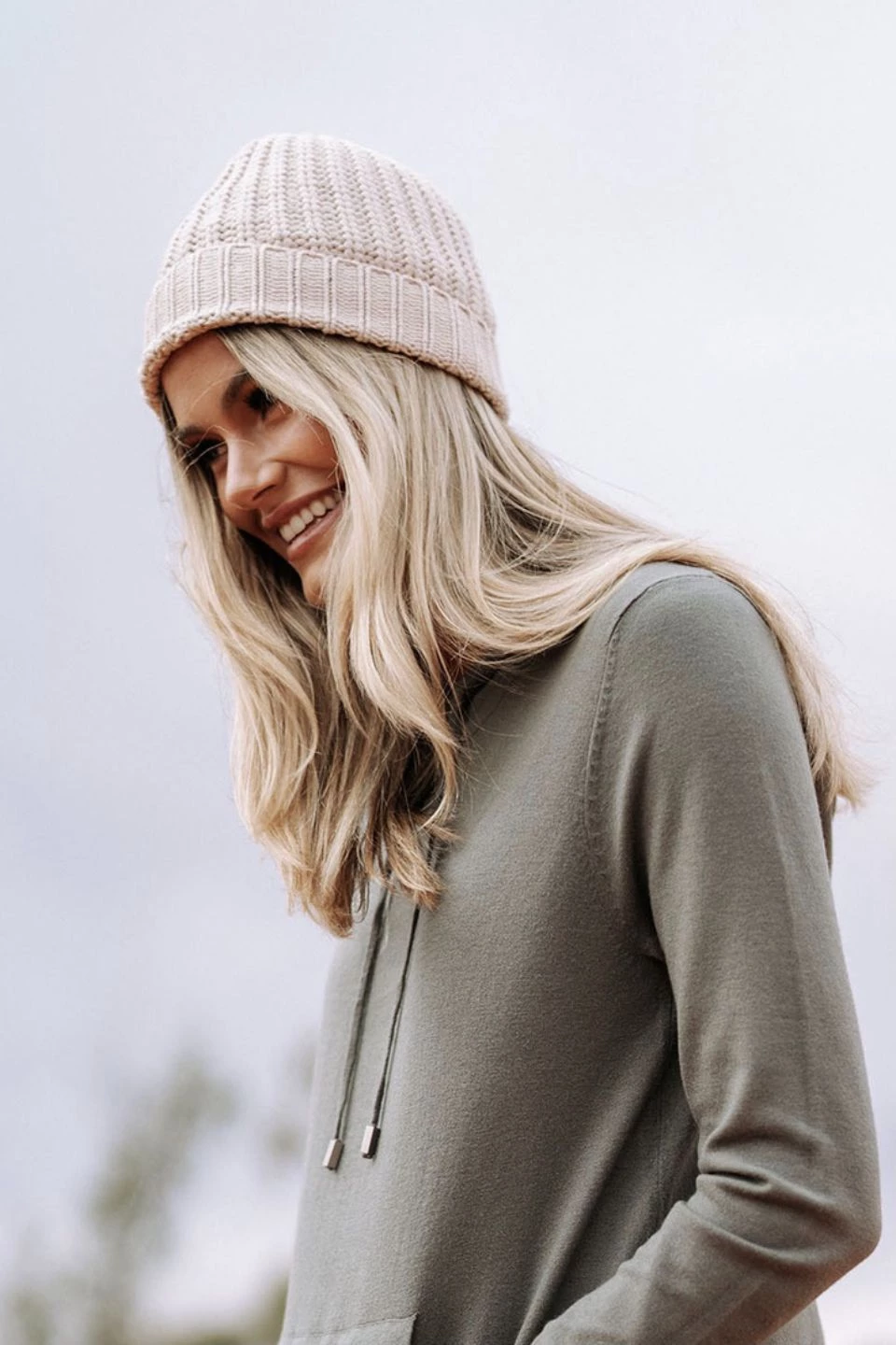 The Keely Beanie will keep you warm but stylish throughout the cooler months. In a gorgeous soft stone colour, This ribbed beanie is a must have for your winter wardrobe.