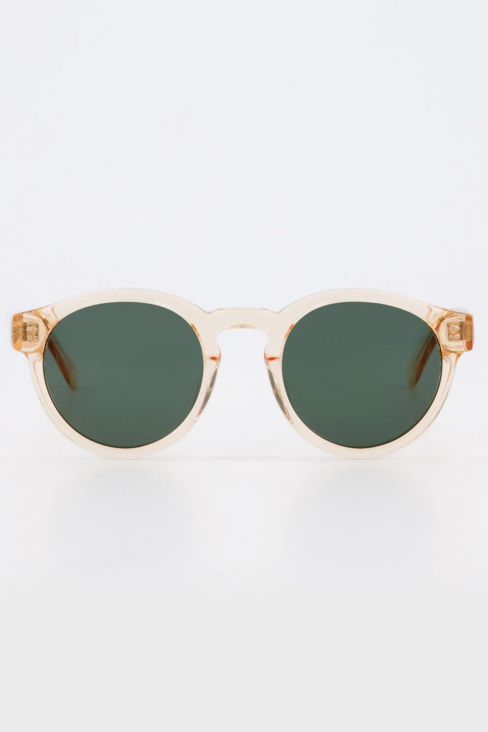 Rounded, smooth, no hard edges. This rounded frame is a classic shape and keeps things simple with a narrow arm that gently curves around the ear for a snug and secure fit. A slightly elevated, wide bridge keeps the frame comfortable on the nose and the focus on the circular shape of the lens.