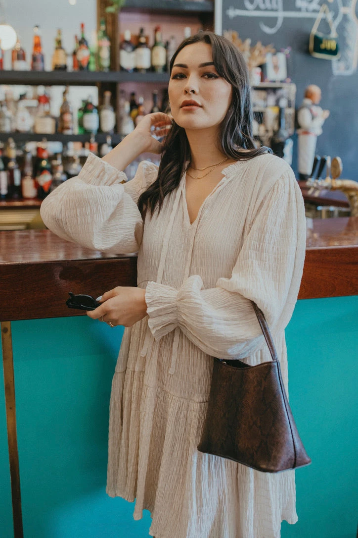 Feel effortlessly stunning at that next party or event in our Billie Dress! This romantic number features floaty long sleeves and a gorgeous V neckline. Pair this mini dress with heeled boots or go for a more casual look with some sneakers.