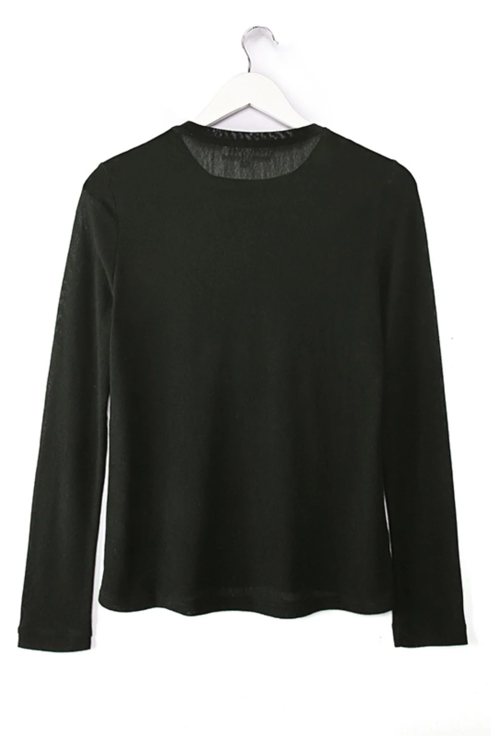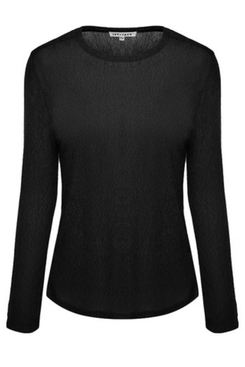 You cant go wrong with our Faith black mesh crew top! Featuring long sleeves, a high neck and a soft and stretchy relaxed fit. We love this as a go-to layering piece.Â