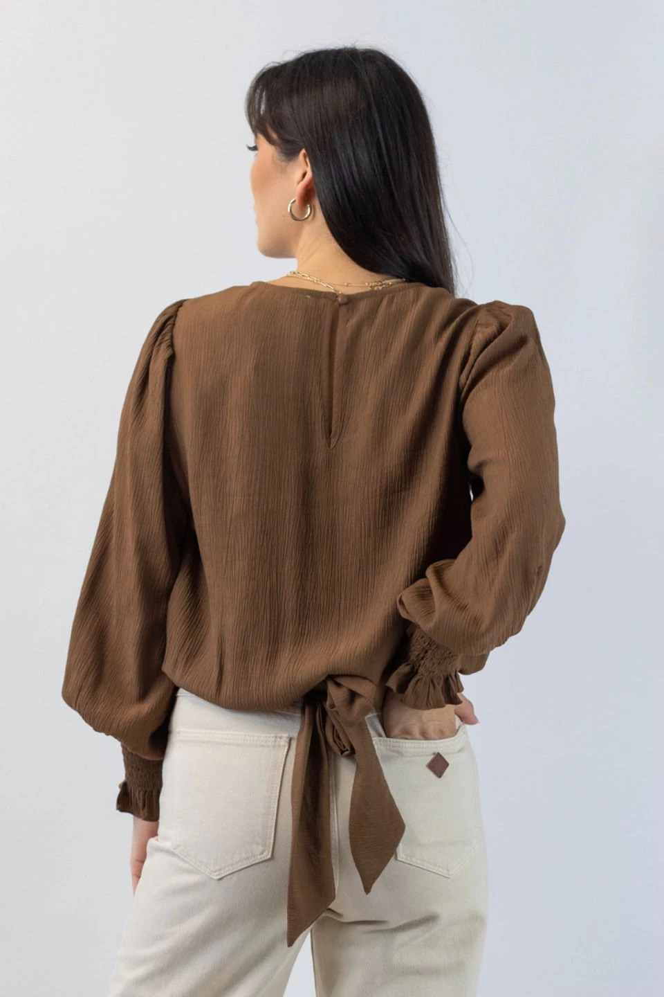 Your new go-to blouse is here! Our heavenly Grace top features long balloon sleeves with fitted cuffs and a tie up back. Easily dressed up with dress pants and heels or worn more casual with jeans and sneakers.