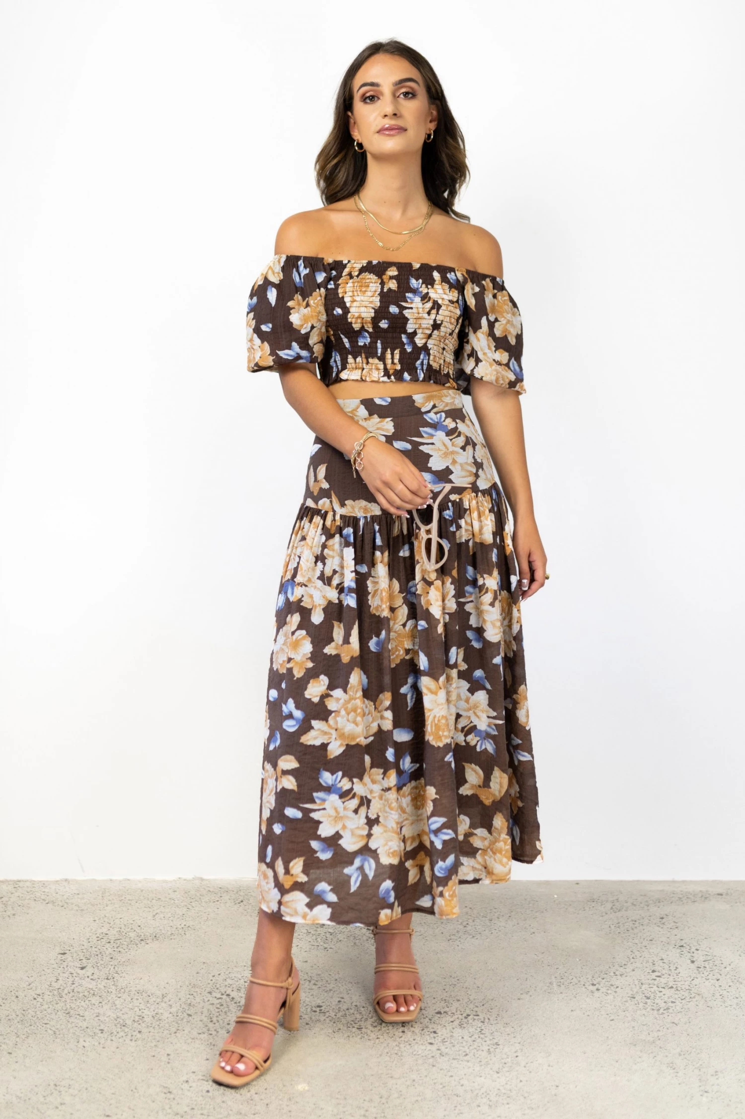 Fall in love with the Sara Chocolate Floral Crop Top from Ivy + Jack. This crop top is super versatile and is guaranteed to become a summer wardrobe favourite. Don’t miss out!
