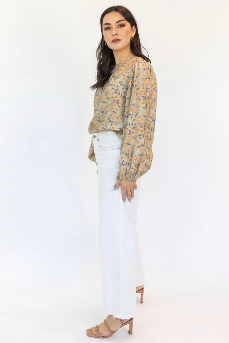 Flowy and elegant, the Selena Blouse is sure to be on high rotation for your wardrobe! This gorgeous piece features a pair of voluminous balloon sleeves and a nude florall print both elevated by its beautiful sheer finish.