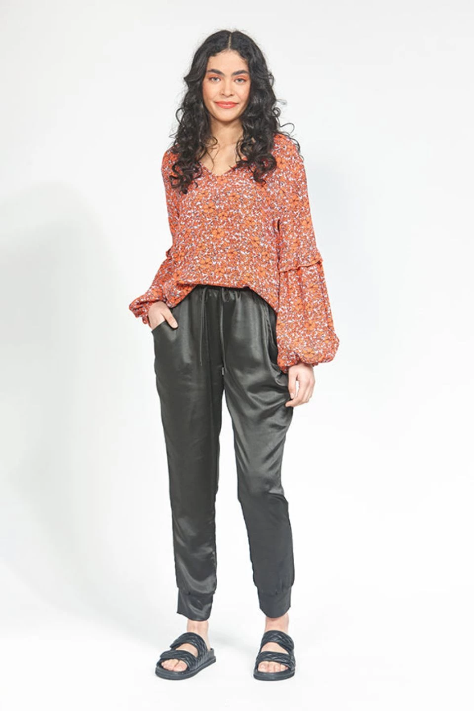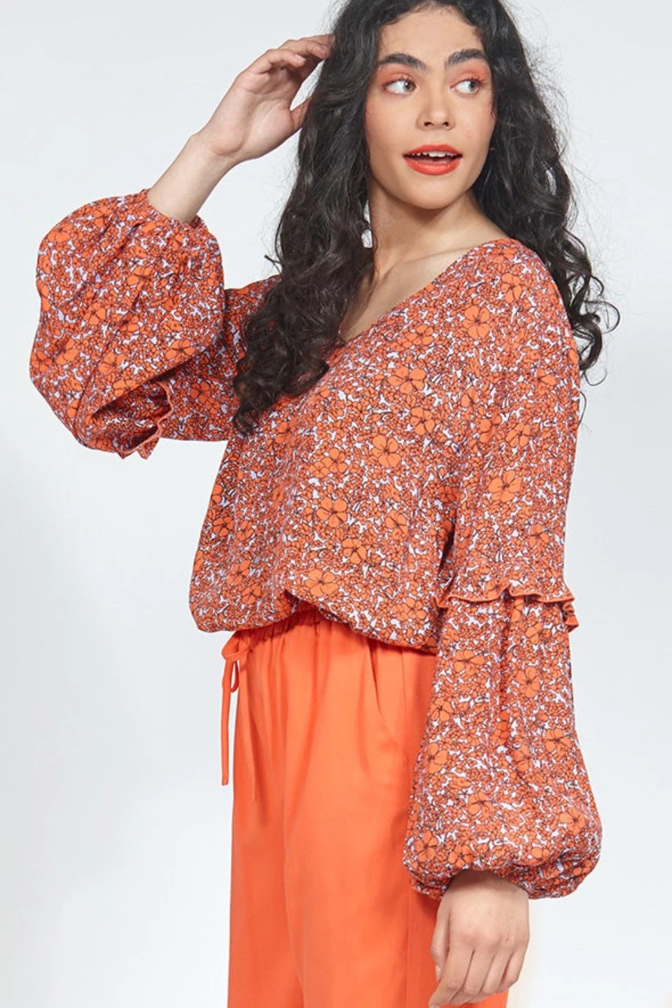 Make a statement with this 70s inspired floral print! Made in a light-weight drapey fabric with balloon sleeves, the Rich Blouse is bold, bright and groovy!