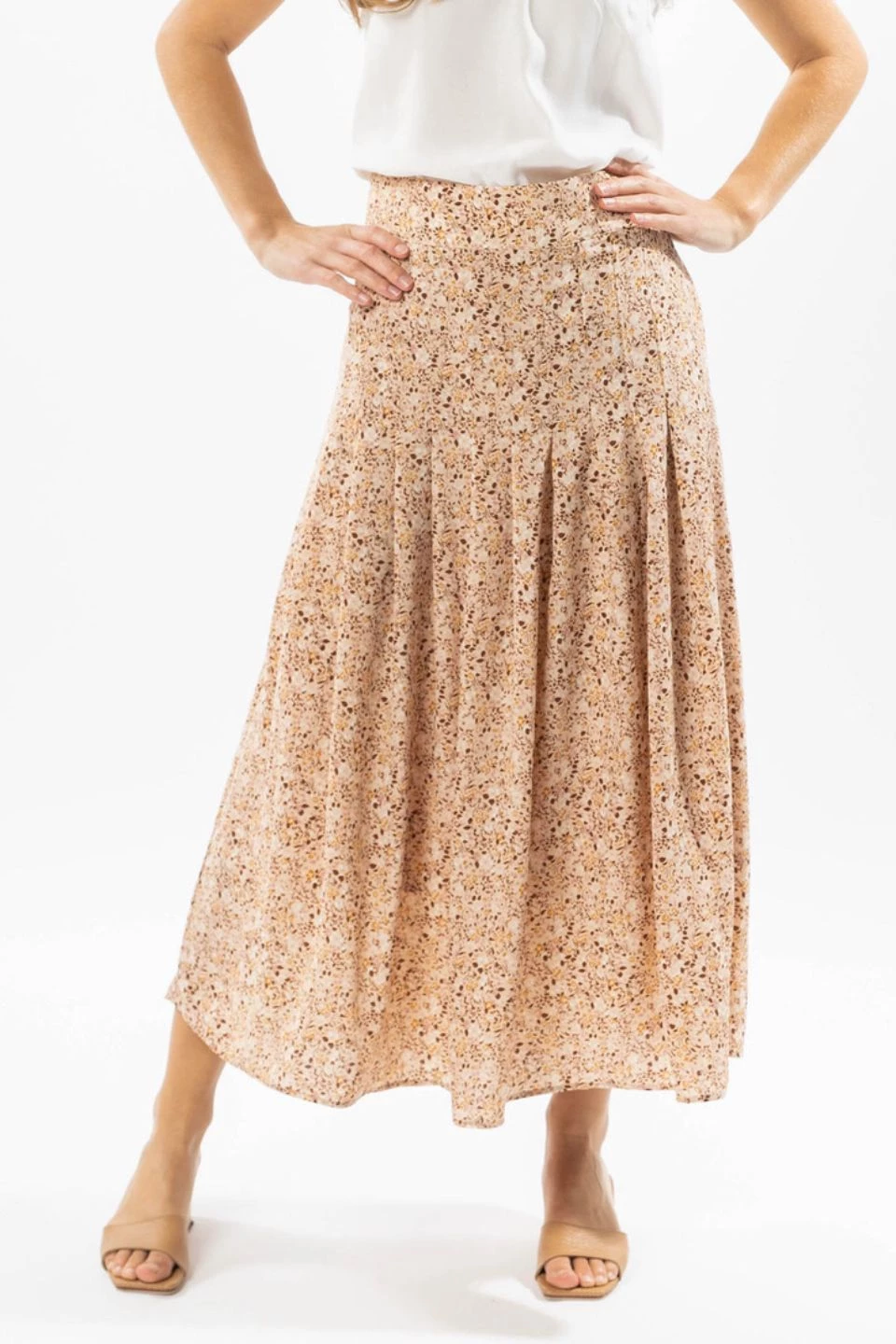 If you’re after a midi skirt for multiple occasions look no further than the Courageous Nude Floral Midi Skirt. Its gorgeous design, pleated detailing, and flowy fit will have you feeling confident and bold wherever you go.