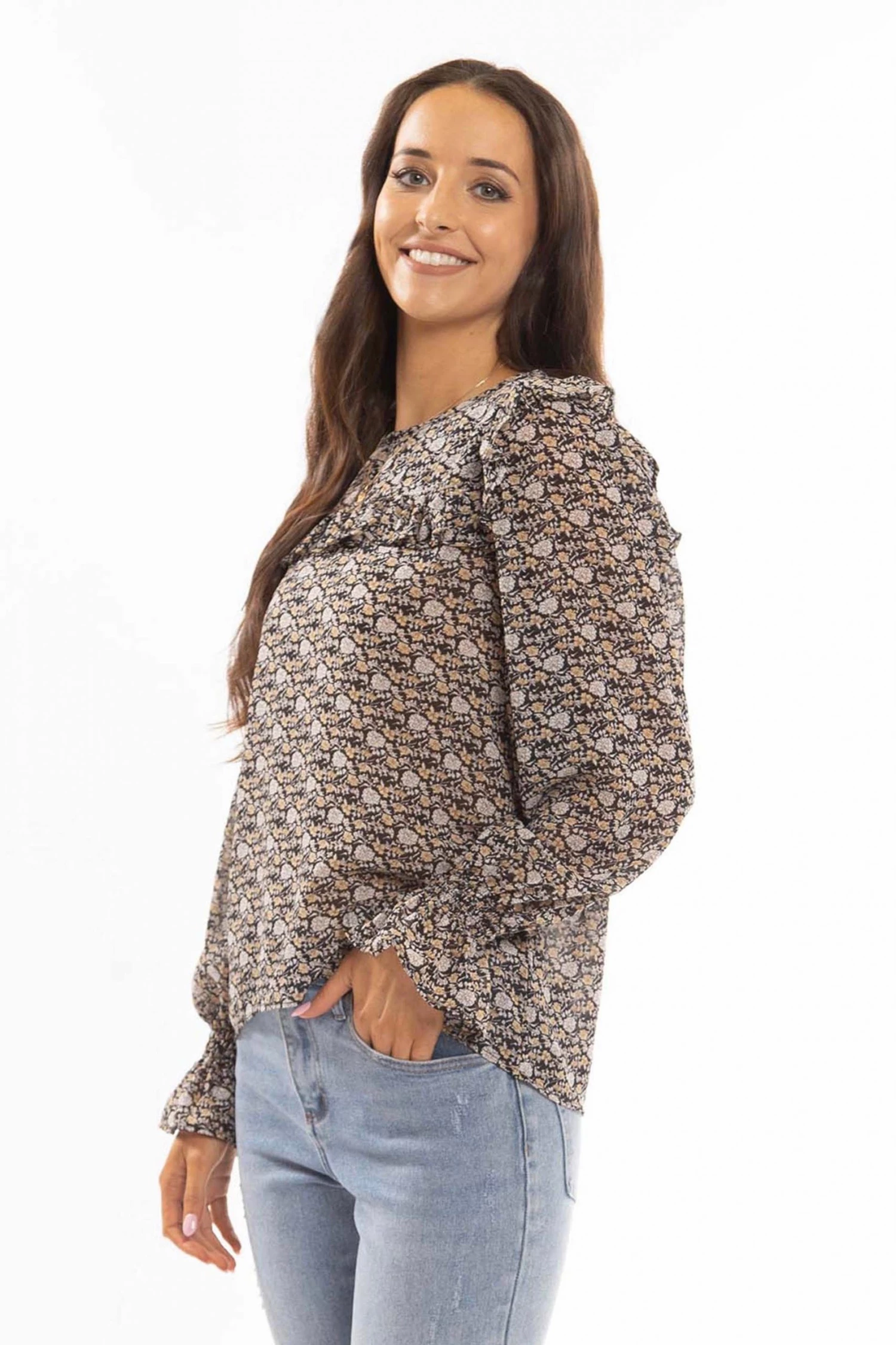 The beautiful Compliment Black Marigold Frill Detail Top will become your new go-to blouse. This floaty blouse pairs well with either a skirt or jeans. Complete the look with your favourite sneakers or heels and you’ve got yourself an all year round top!