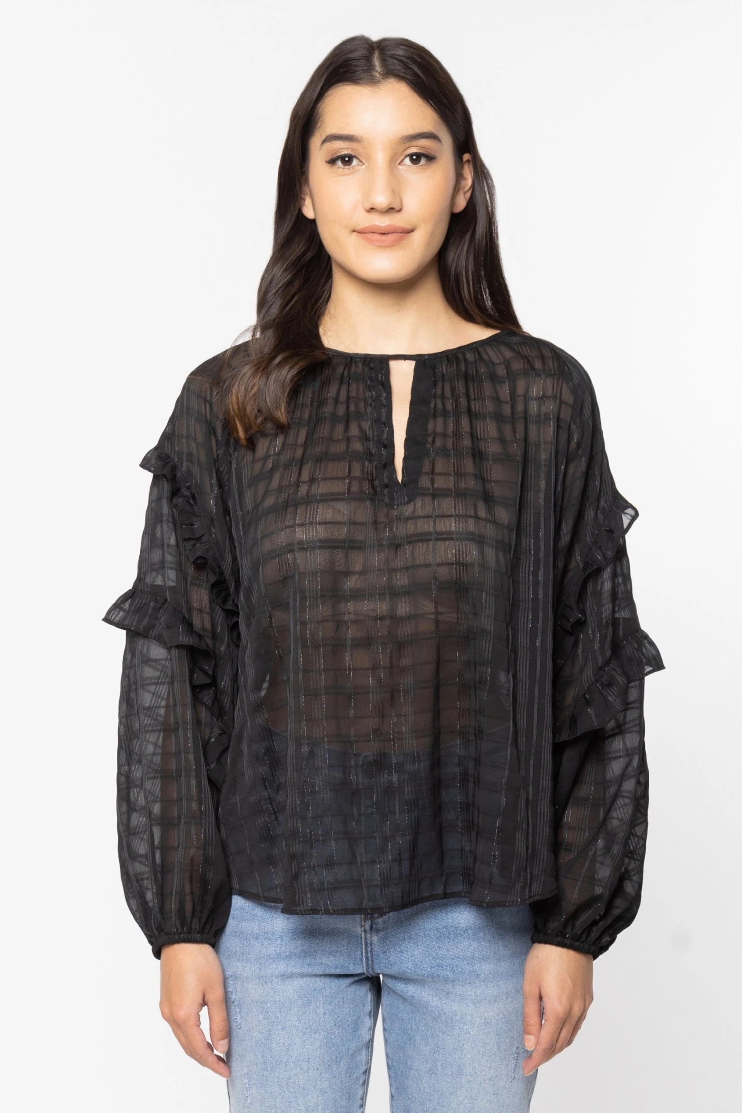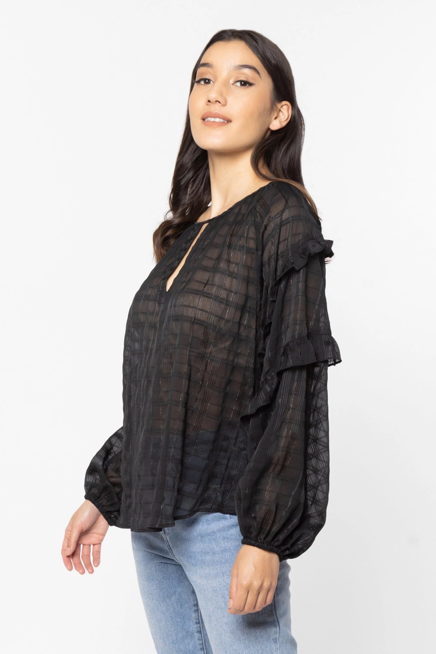 A perfect go-to top to pair with your favourite jeans for a casual or dressed up. Its frills and unique fabric will surely catch an eye!