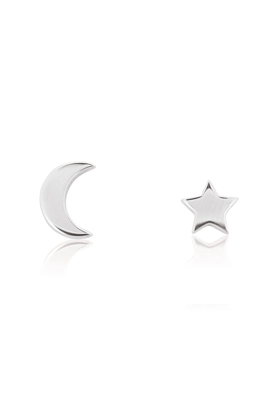 Star and Moon Stud Earrings made in nickel-free sterling silver with a polished finish.