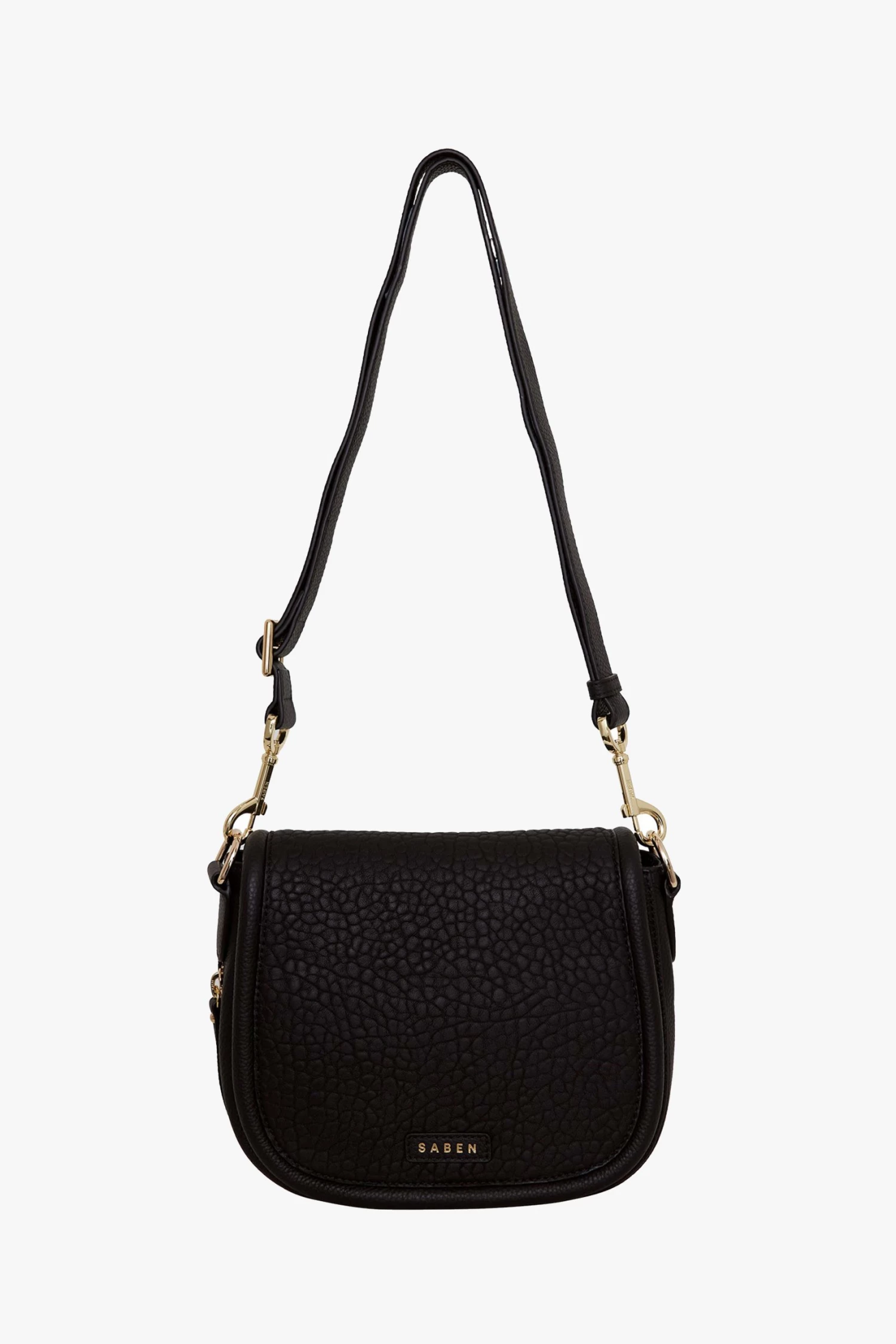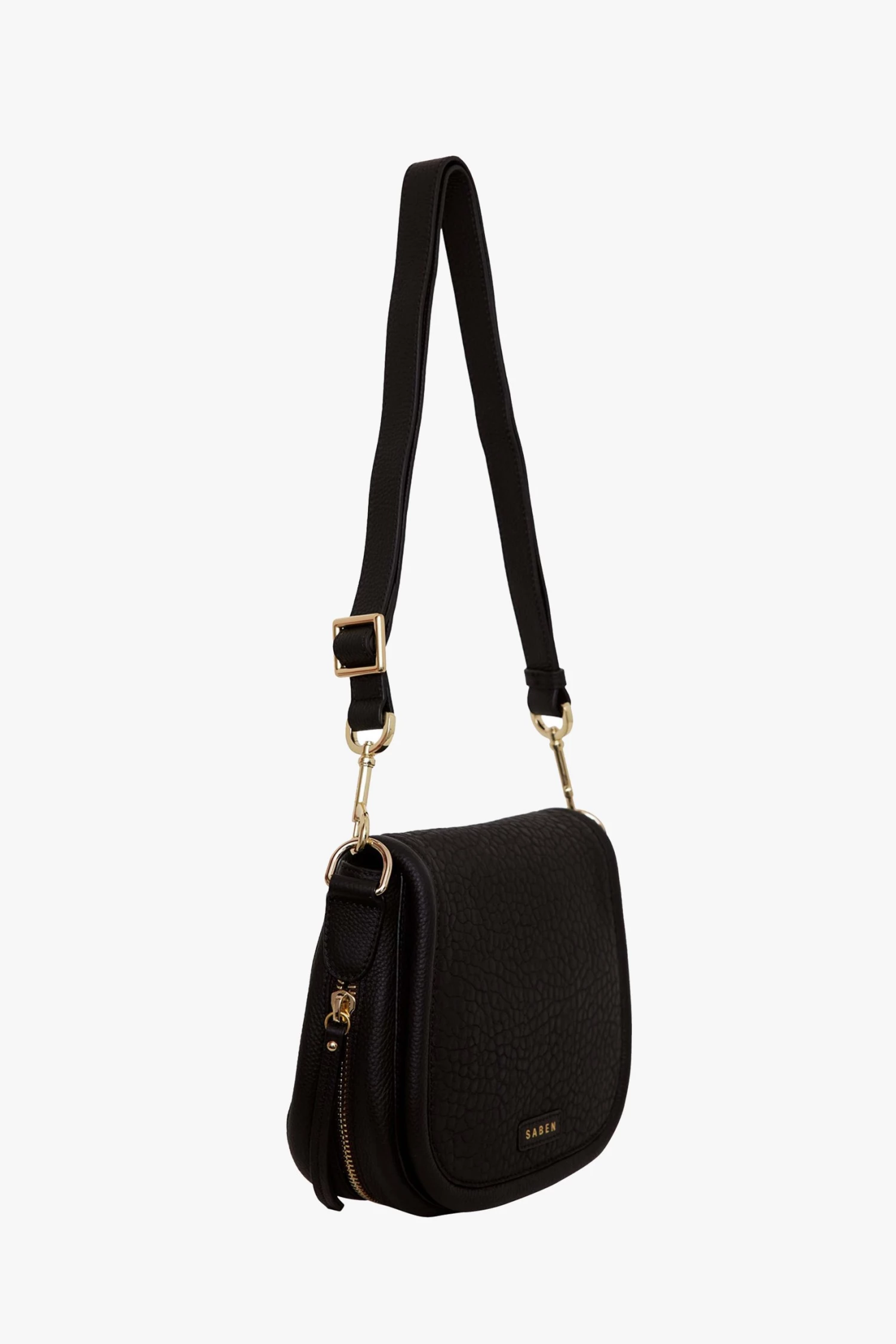 New to the Saben stables is Sadie, a classic Saddlebag silhouette with a twist. Sadie is a chic and compact cross-body with oversized piping detail, and gold zip detailing. The underside of the bag hides a zip gusset detail which unzips to offer more little wiggle room. She fits a lot more than you think. Backdrop pocket with hidden magnet closure, hidden zip gusset expands for more room, internal zip pocket, internal drop pocket.Â