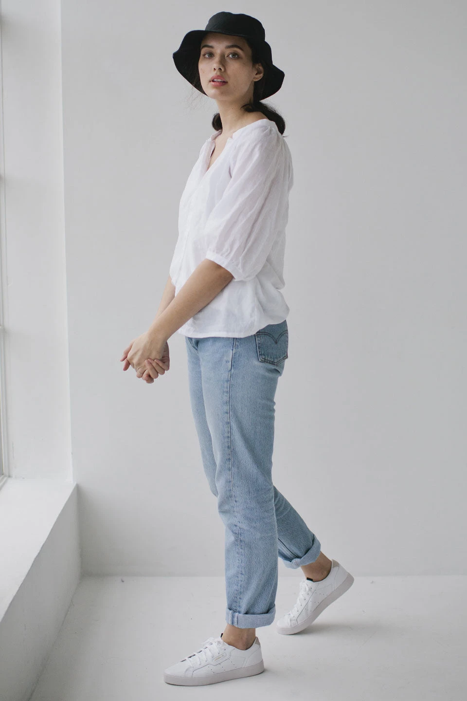 Simple linen bucket hat. Looks good & sun-safe too.Â