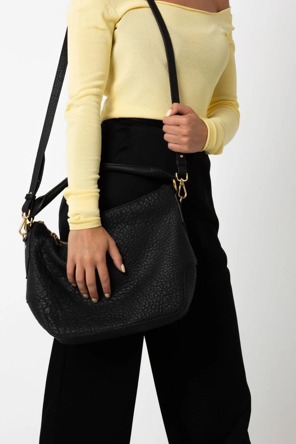 Slouchy and relaxed the Dani shoulder bag is the carefree Hobo shape. This minimalist design expresses effortless style. With the subtle yet distinct texture of bubble leather our Dani bag is sophisticated and timeless.